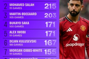 鲸鱼直播在线观看-22/23赛季开始英超运动战创造机会榜:B费243次第一,萨拉赫第二